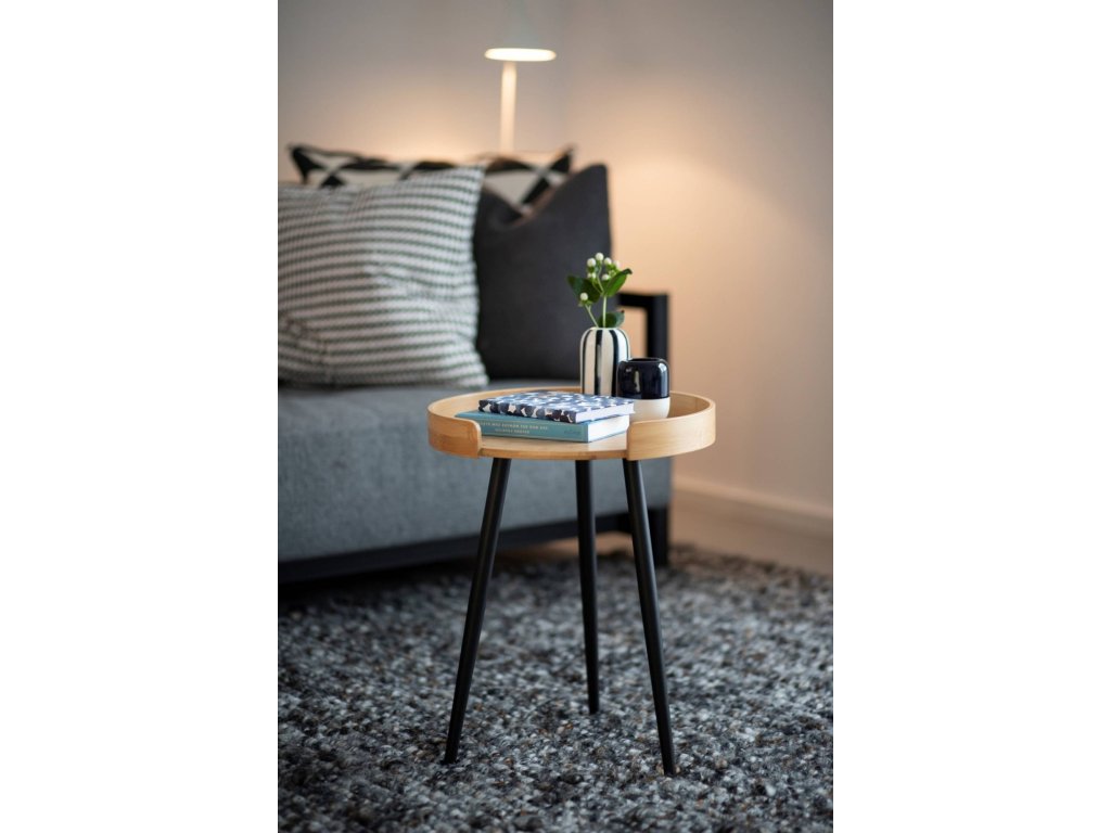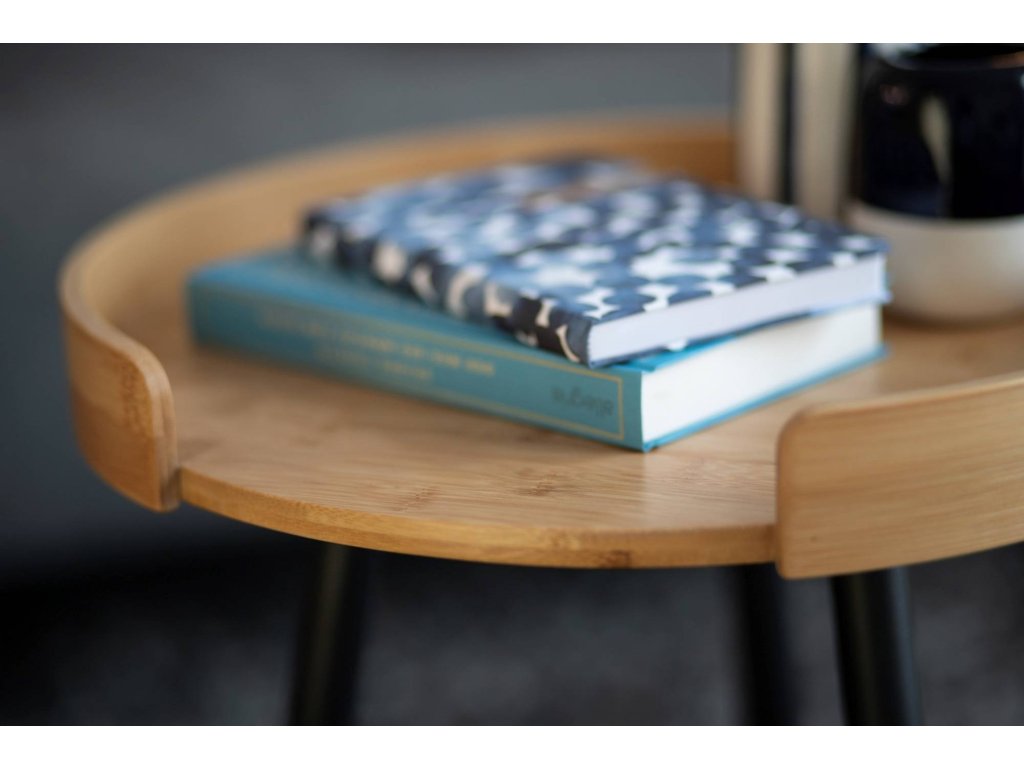 Konferenční stolek je dekorace, která dodá výjimečnou atmosféru setkáním u kávy, čaje nebo drinků. Je to také vynikající řešení, když začíná chybět místo. Stolek je odolný a lehký: lze ho snadno schovat nebo přemístit, když je potřeba na jiném místě. Nepřehlédnutelný modernistický charakter konferenčního stolku LOFT je zásluhou především jeho zajímavé formy a provedení z vysoce kvalitního bambusového dřeva. Rozpoznávacím znakem prezentovaného stolku je kulatý vršek a elegantní dřevěné nohy. Další výhodou je stabilní konstrukce, která minimalizuje riziko převrhnutí dekorací nebo sklenic, které na něm stojí. Konferenční stolek LOFT je především bezpečnost, trvanlivost a vysoká kvalita.