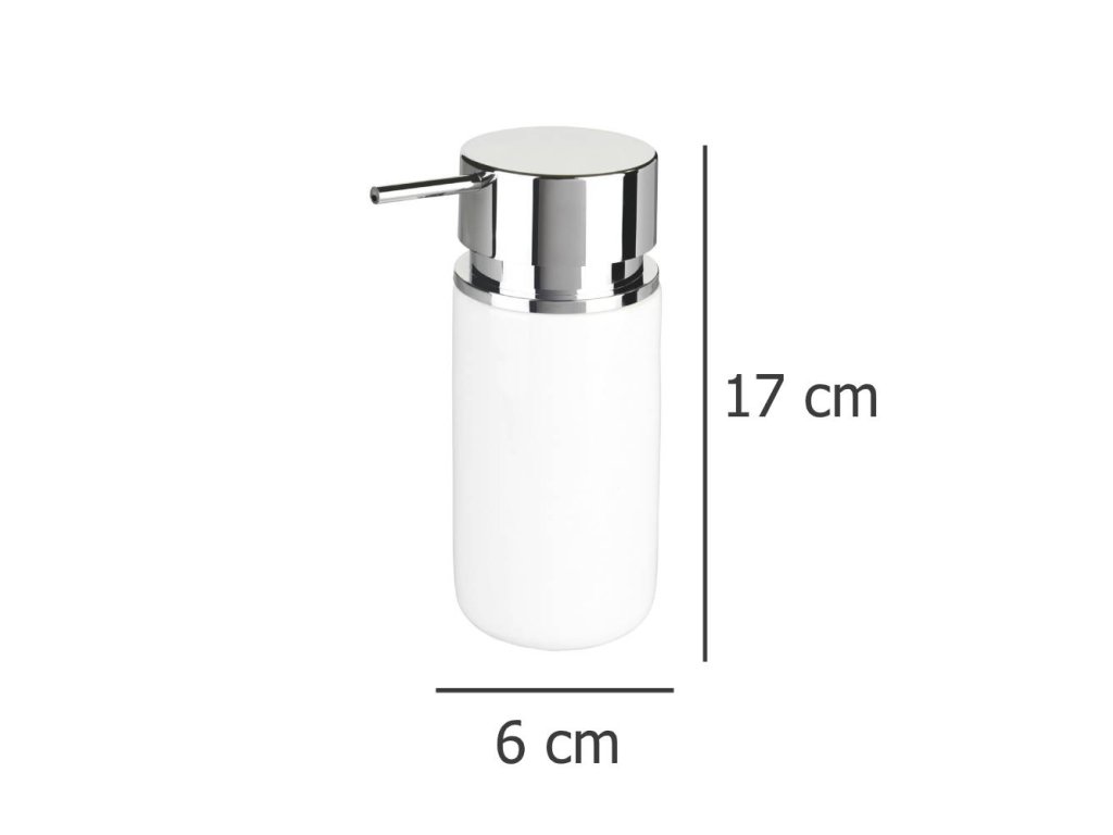 Keramický dávkovač mýdla ze série koupelnových doplňků SILO. Skvěle se hodí do moderní koupelny a nejen tam. Umožňuje rychlou a pohodlnou aplikaci mýdla. Navíc se hodí jako dávkovač prostředku na mytí nádobí, balzámu, šamponu atd. Určeno k opakovanému plnění. Objem 250 ml. Vyrobeno z vysoce kvalitní keramiky. Pumpička a víčko z plastu stylizovaného na chromovaný kov.