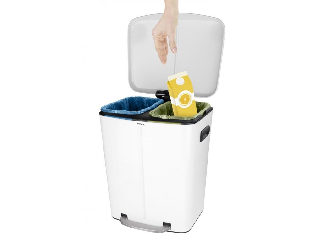 Produkt má praktické značky. Každý z domácích členů, a také hosté, budou vědět, jaké odpadky mohou házet do každého koše. Easy Close Primo je vybaven dvěma vyjímatelnými koši vyrobenými z pevného plastu o objemu 20 litrů. Konstrukce byla vyrobena z kovu s práškovým lakováním. Používání produktu usnadňuje praktický pedál umožňující zvedání víka. Koš na třídění odpadu ideálně splní svůj úkol v kuchyni, koupelně, toaletě, a dokonce i v kanceláři.