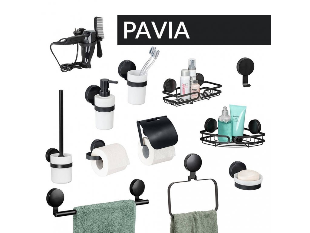 Polička pod sprchu PAVIA v matné černé barvě. Konstrukce z kovu se skvěle osvědčí v mokrém prostředí koupelny. Je to materiál trvanlivý, odolný proti korozi, ale také snadno čistitelný. Voda může volně odtékat z otvorů v poličkách, díky čemuž houba, pemza, kostka mýdla a další příslušenství mohou volně uschnout. To je nesmírně důležité, aby se nevyvinula plíseň. Velký prostor na poličce umožňuje umístit všechny kosmetiky a koupelnové potřeby.