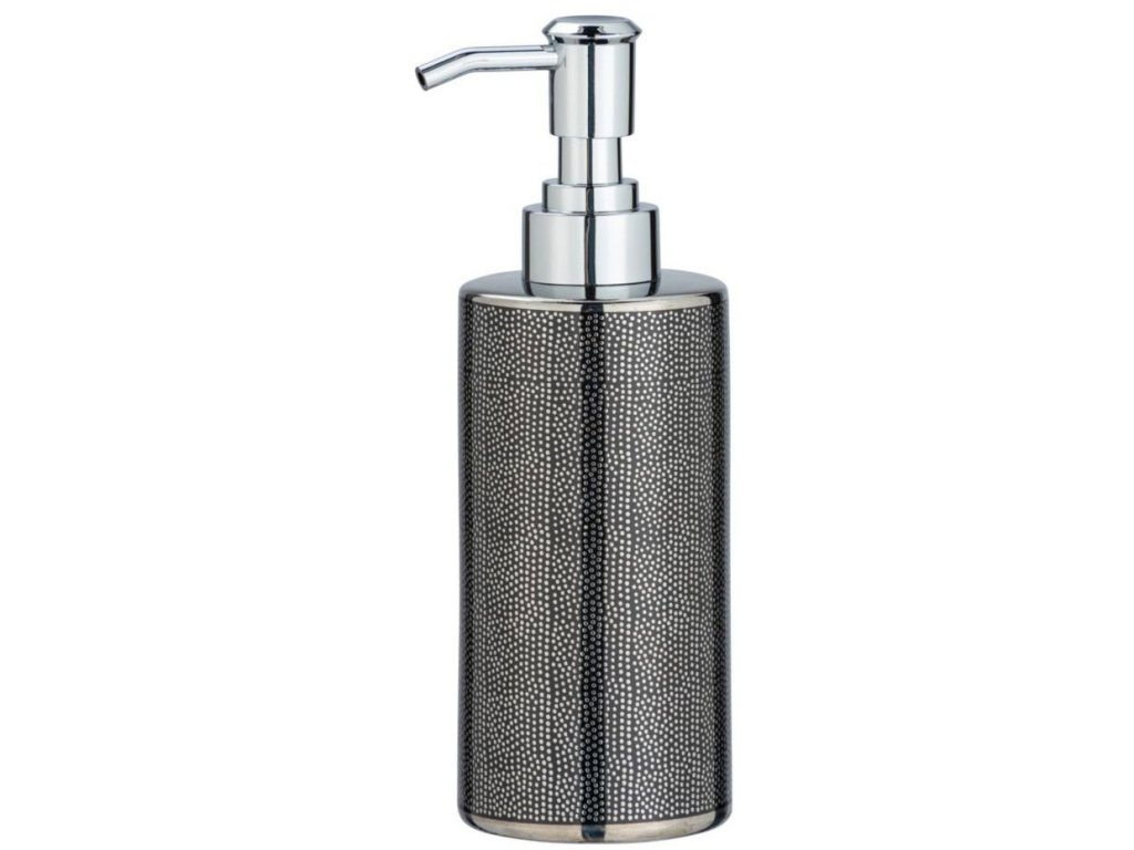 Dispenser na tekuté mýdlo NURIA, černý, WENKO. Jak v moderní, tak v klasické koupelně nesmí chybět stylové doplňky. Mezi mnoha skupinami produktů, gadgetů a příslušenství obvykle vybíráme ty, které nejen splňují naše estetické požadavky, ale zároveň jsou solidní a praktické. Patří sem především mýdlenky, nádoby na zubní kartáčky, dispensery na mýdlo a také různé kosmetické organizéry, ve kterých uschováme všechny potřebné příslušenství pro péči o pleť, kosmetiku a hygienické prostředky.