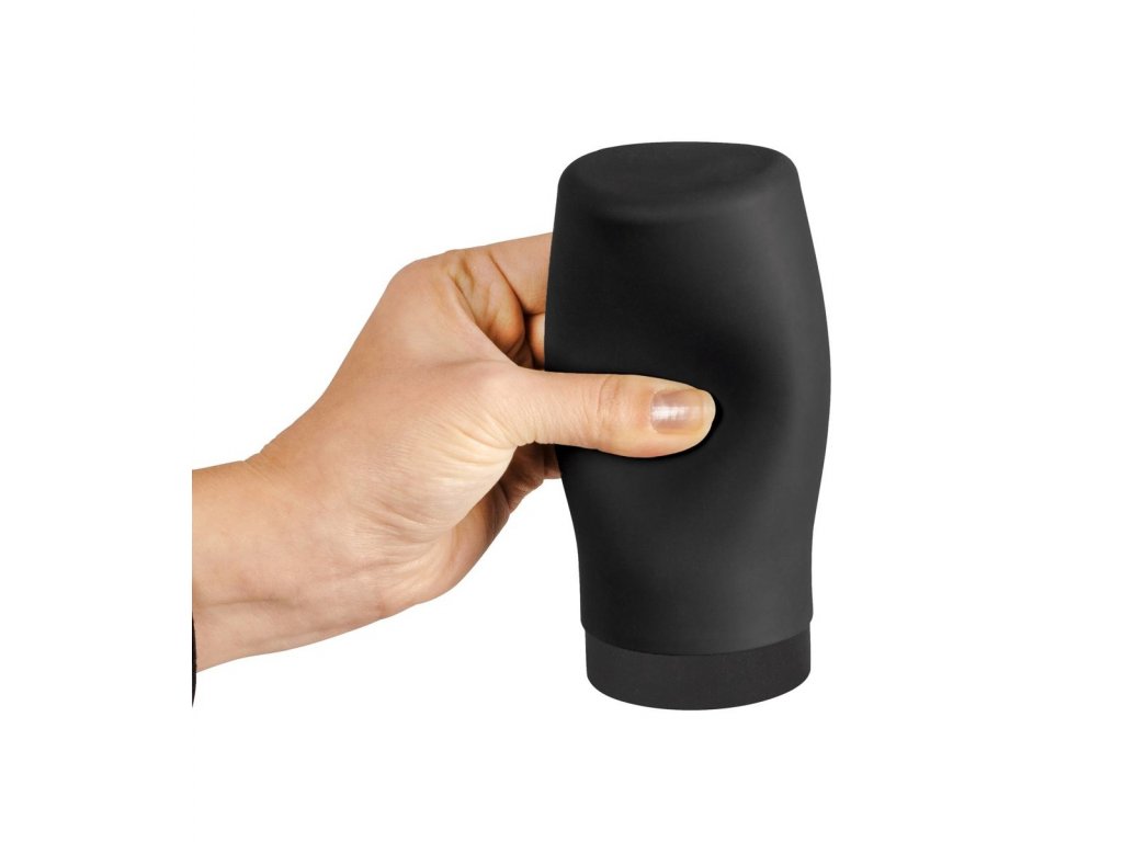 Nádobu lze pohodlně otevřít pro doplnění mýdla, stažením její dolní části. Ploché, hladké dno zajišťuje, že se nádoba neklouže po umyvadle a nezanechává škrábance a stopy na povrchu.