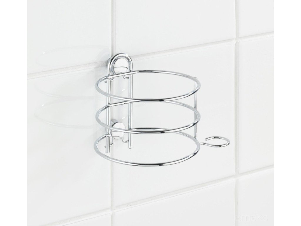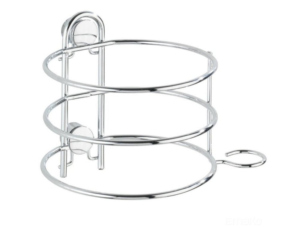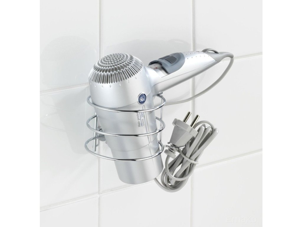 Klasický držák na fén na vlasy. Vyroben z chromované oceli. Pomůže udržet fén na snadno dostupném místě po ruce. Vybaven integrovaným držákem na kabel. Elegantní design dokonale zapadne do každé koupelny. Montáž pomocí přiložených šroubů a hmoždinek. Alternativní montáž s adaptéry Vacuum-Loc, Turbo-Loc a Power-Loc. Průměr otvoru je 9,5 cm.