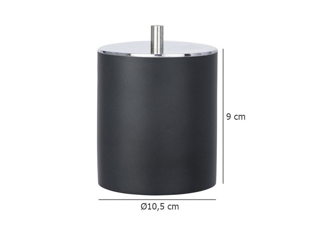 Univerzální kosmetická krabička IDA se vyznačuje rozměry 10,5 x 10,5 x 9 centimetrů, díky čemuž se vejde na pracovní desku, do zásuvek nebo do uzavíratelných koupelnových skříněk. Černá barva se hodí téměř do každého interiéru a udělá z nádoby výjimečnou ozdobu vaší koupelny.