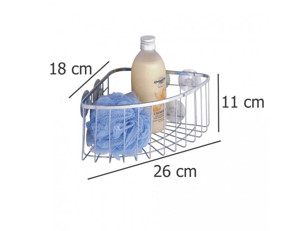 Rohová polička do koupelny Ragusa pomáhá udržet nezbytné věci na koupání na dosah – sprchový gel, šampon, kondicionér atd. Vysoký okraj zabraňuje jejich pádu. Ideální do sprchového koutu i nad vanu. Montáž nevyžaduje použití nářadí ani lepení. Upevněná na 6 přísavkách, díky nimž ji lze rychle a snadno přesunout na jiné místo. Nezabírá mnoho místa. Žebrovaná struktura umožňuje volné odvodnění vody.