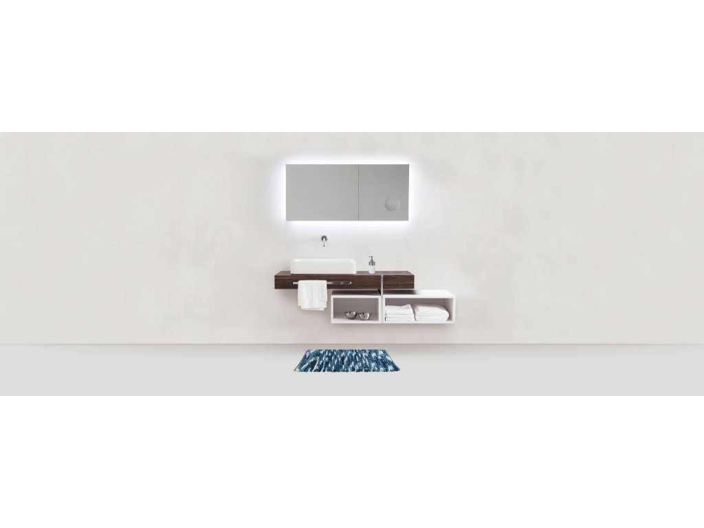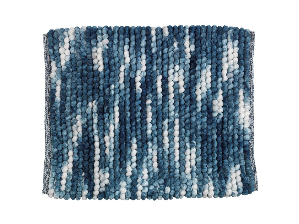 - Smíšený vzor: Melanžový vzor byl získán díky stylovému plochému tkaní. Tento typ úpravy koupelnové rohože usnadňuje její čištění a dodává jí měkkost. K dispozici jsou rohože ve třech barevných odstínech: modré, šedé a béžové.