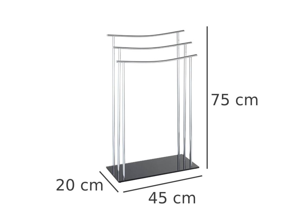 3 ramenný stojan na ručníky a oblečení JAPAN udržovaný v módním, orientálním stylu. Umístěný v koupelně se stane nejen elegantním doplňkem, ale také pomůže udržet pořádek a urychlí schnutí ručníků. S jistotou dodá koupelně elegantní charakter a udrží nezbytné příslušenství na snadno dostupném místě. Vyroben z vysoce kvalitní chromované oceli. Stabilní základna z tvrdého skla v černé barvě. Nejvyšší kvalita a pevné provedení zaručují dlouhotrvající používání.