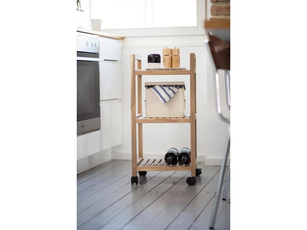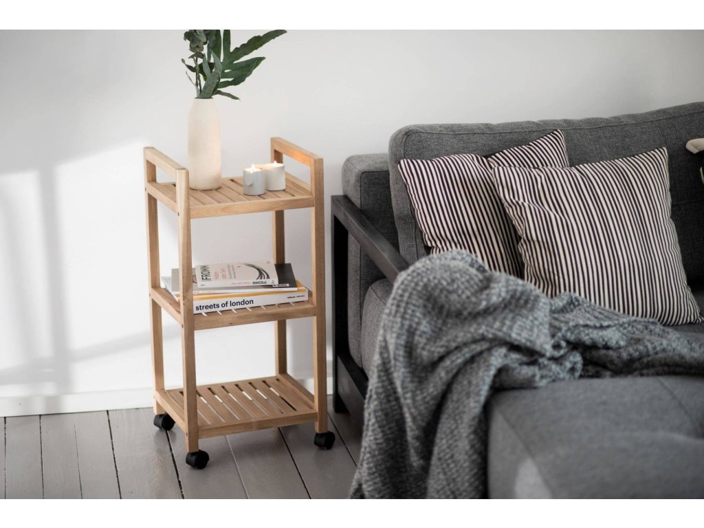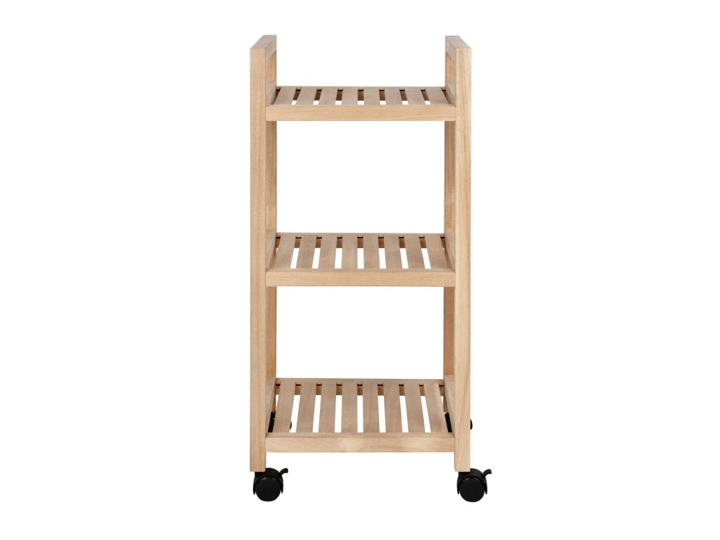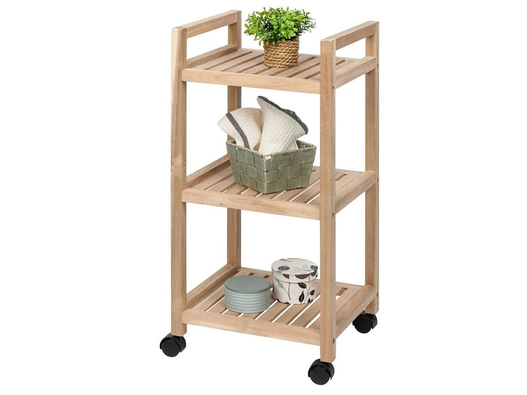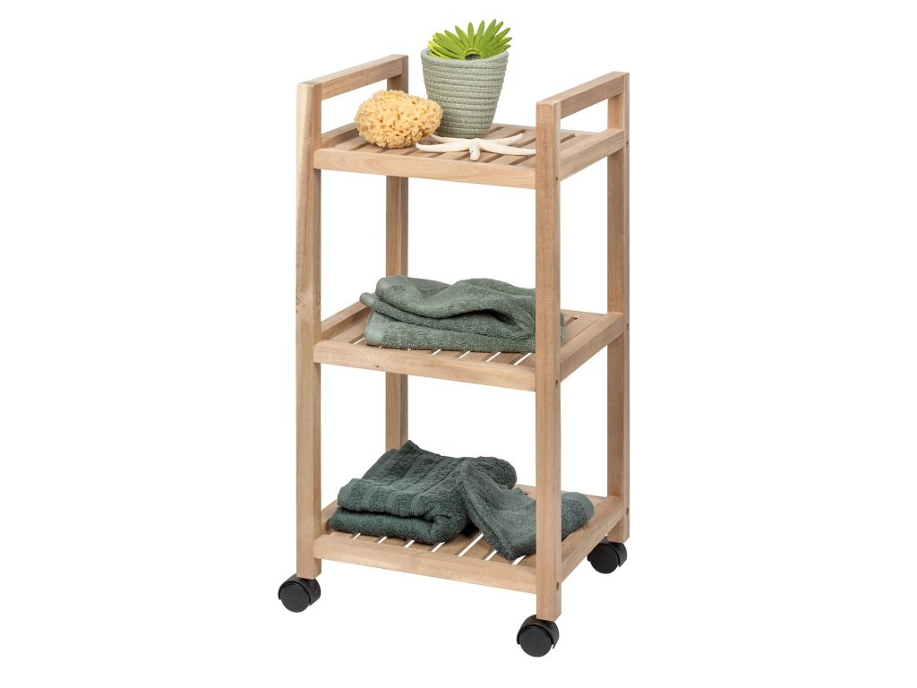 Koupelnový vozík na kolečkách ACINA, se 3 policemi, akátové dřevo