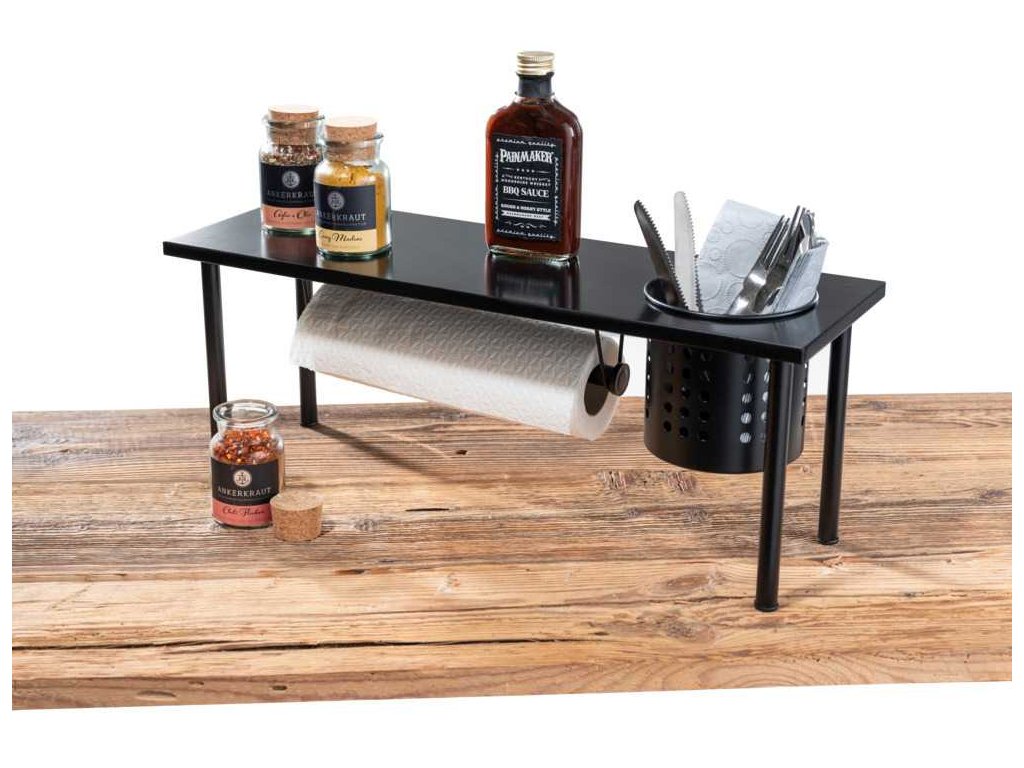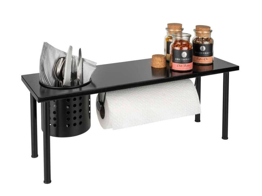 Kuchyňská polička s držákem na papírové utěrky BLANCO značky WENKO je také dodatečná plocha, na které můžete umístit užitečné příslušenství. Na zvláštní pozornost si zaslouží design, který nepřitahuje pozornost. Rozměry produktu jsou 55 x 21 x 18 centimetrů. Takové řešení zajišťuje, že polička se vejde i na malé ploše.