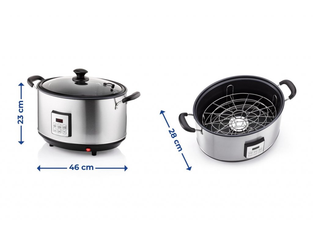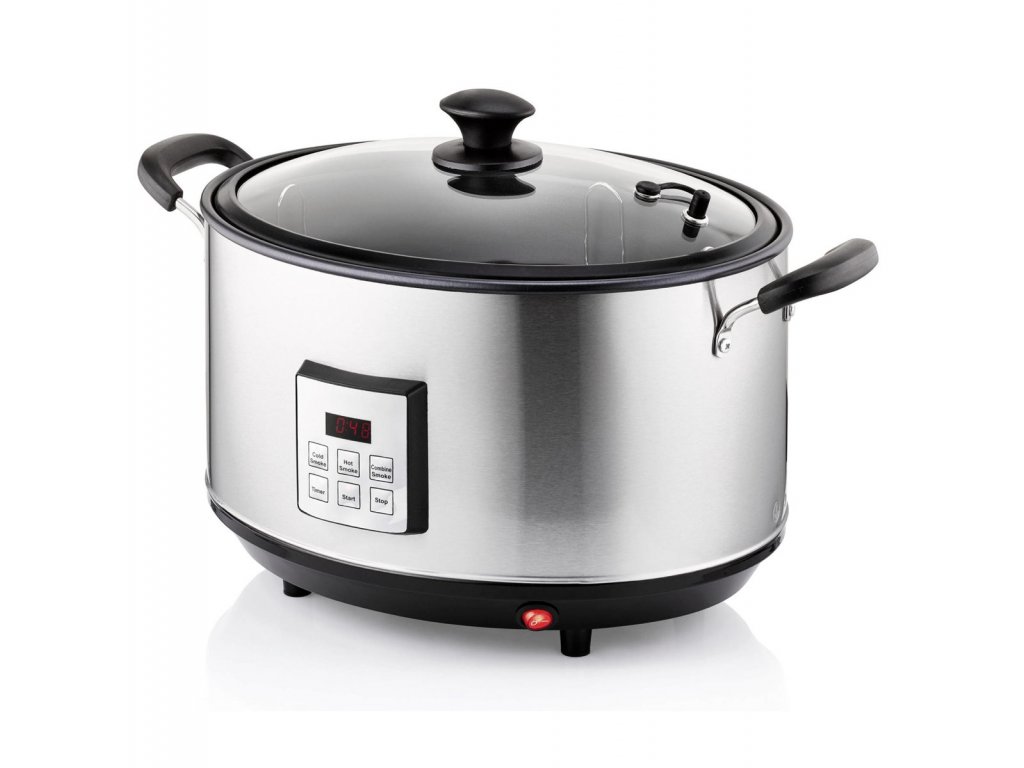 - Pohodlné a snadné použití: Používání udírny je nesmírně jednoduché. Stačí umístit štěpky nebo piliny do speciální nádoby udírny, nastavit úrovně vaření, vložit potraviny k uzení, nastavit čas a hotovo. Udírna zabírá málo místa a je snadno čistitelná díky nepřilnavému povrchu uvnitř a vyjímatelným úrovním, které lze mýt v myčce.