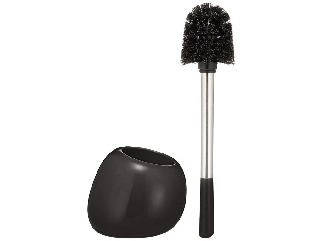 Elegantní sada koupelnových doplňků otevřený zásobník + WC štětka ze série doplňků POLARIS BLACK z vysoce kvalitní černé keramikyje praktickým a stylovým doplňkem do každé koupelny. Atraktivní design se skvěle hodí do koupelen v moderním stylu a nejen tam. Sada obsahuje štětku o průměru 7,5 cm v černé barvě s vyměnitelným vláknem a kovovým držadlem.