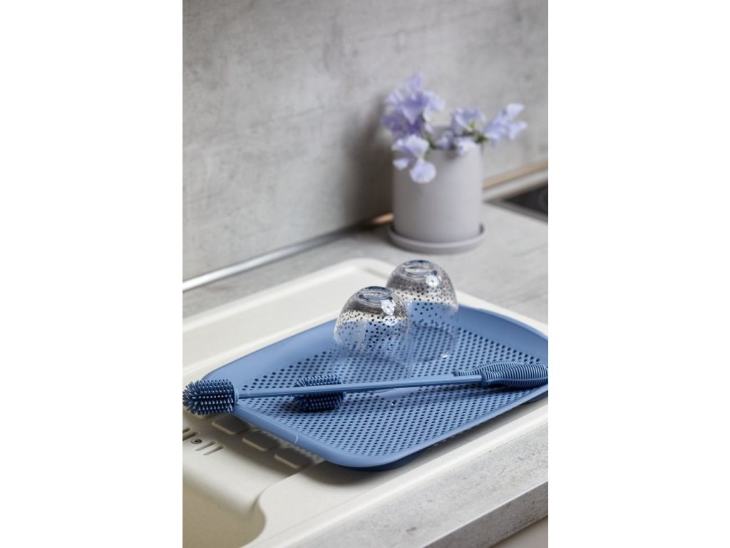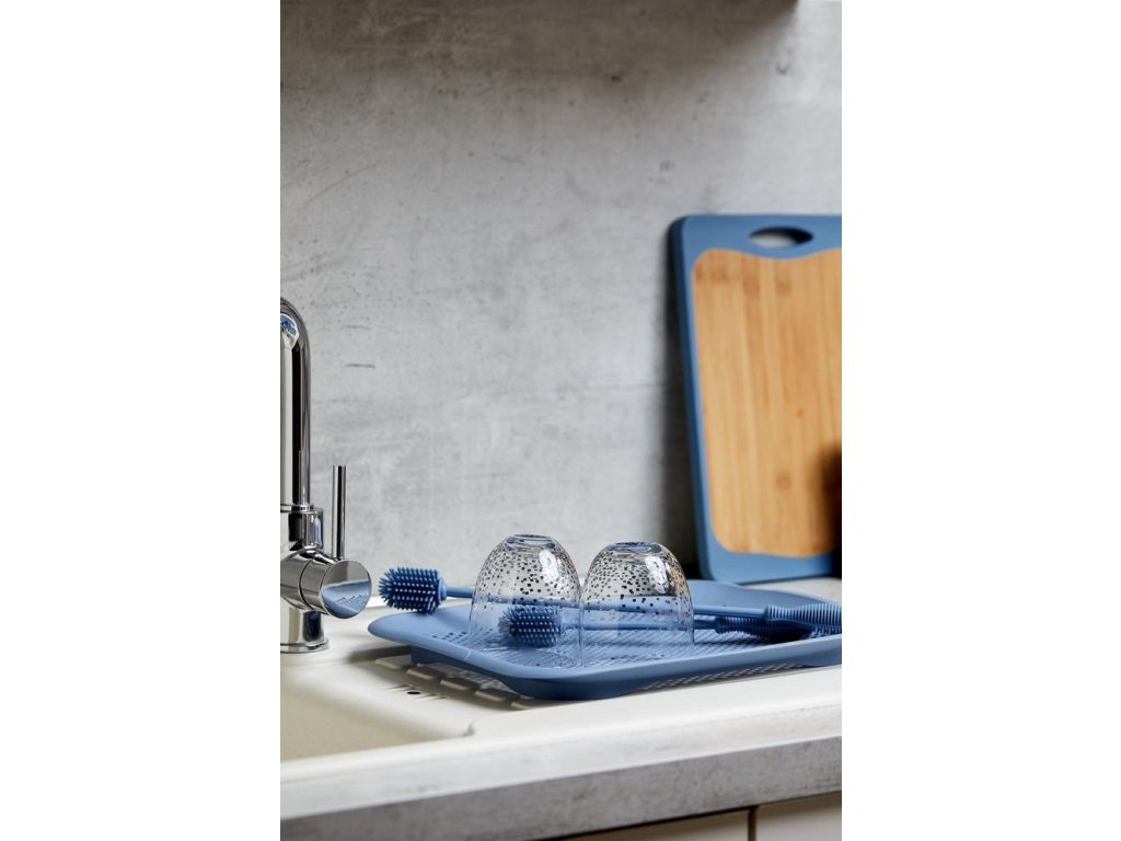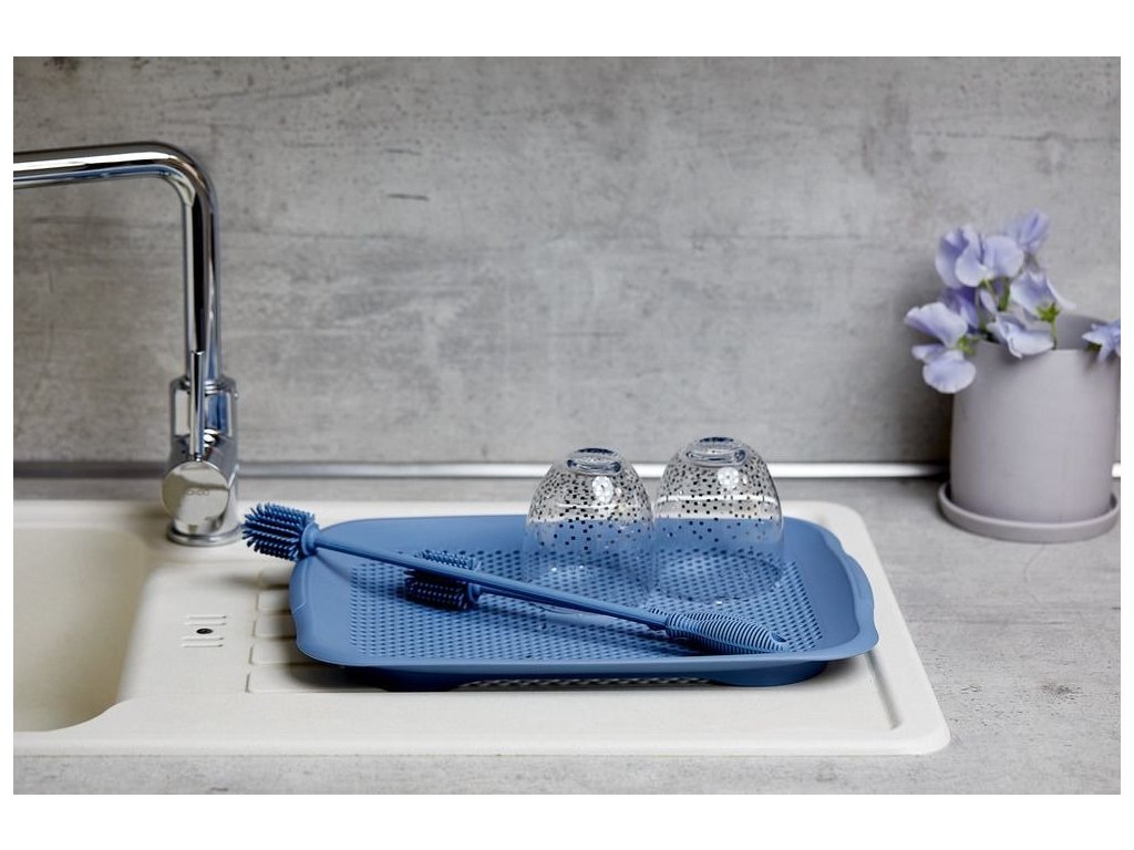 Podložka na sušení nádobí SHARI, modrá, WENKO vyrobená z vysoce kvalitního plastu je nesmírně praktickým doplňkem, který se stane nezbytnou součástí vybavení každé kuchyně. Odkapávač o rozměrech 36x27x3 cm nezabírá mnoho místa na kuchyňské desce a přitom zaručuje dostatečnou plochu na sušení nádobí. Bez problémů na něm usušíte talíře nebo sklenice, které uschnou v mžiku a zůstanou dokonale čisté. Rychlé sušení nádobí zabraňuje rozvoji různých druhů mikroorganismů a zajišťuje jejich hygienickou čistotu.