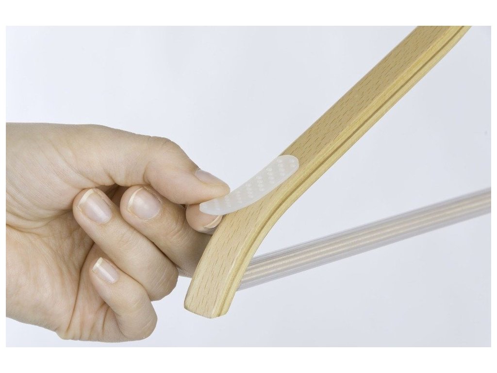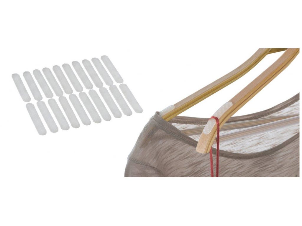 Samolepicí protiskluzové pásky účinně zabraňují sklouzávání oděvů z ramínek. Doporučují se pro uchovávání košil z jemných tkanin, tílek atd. Vyrobeny z průhledného silikonu. Snadné na montáž. Zaručují lepší přilnavost k ramínku.
