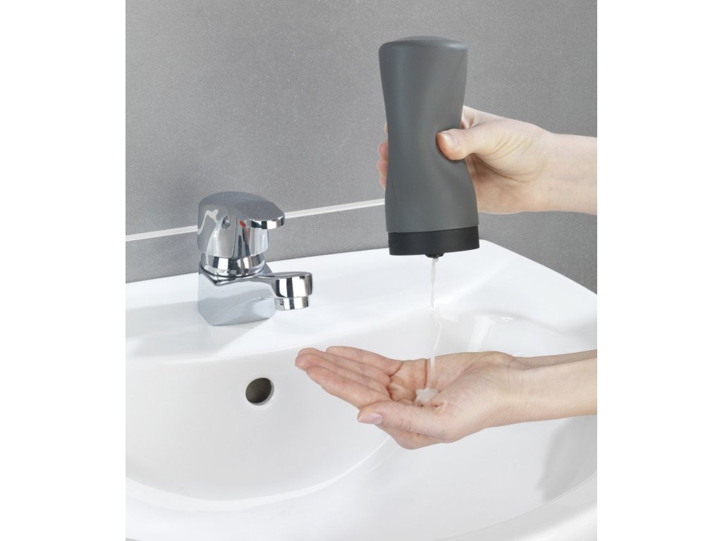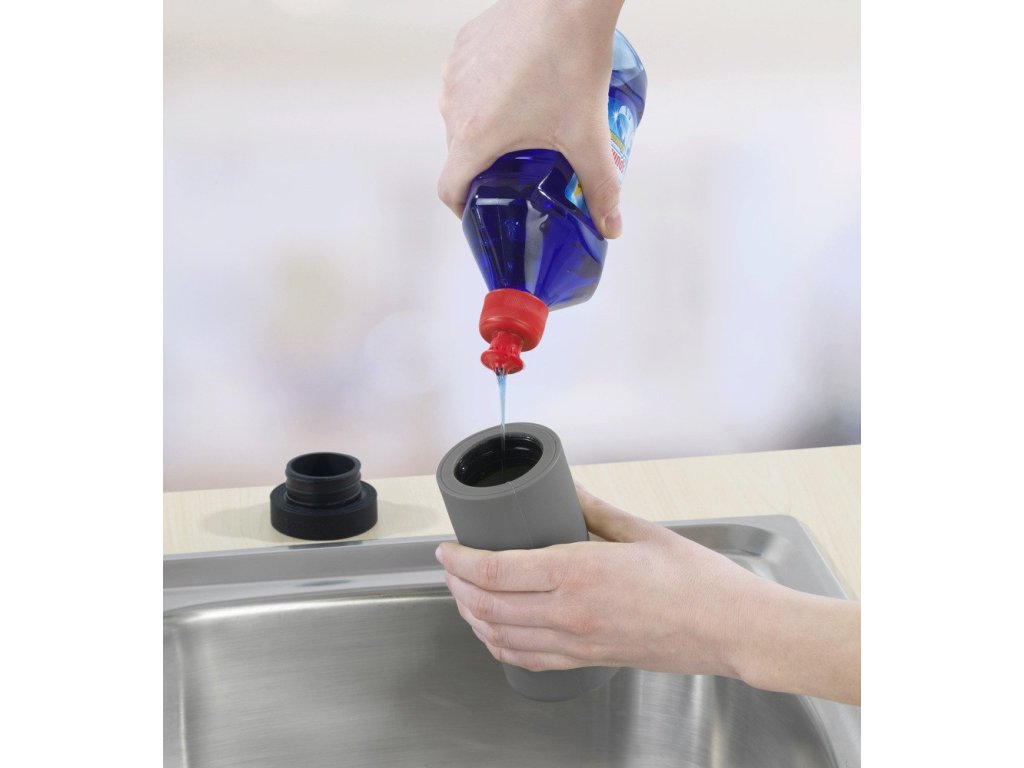 Dávkovač tekutého mycího prostředku Easy SQUEEZ-E v šedé barvě od značky Wenko vám pomůže při mytí nádobí. Funkční vyrobený z vysoce kvalitního plastu dávkovač efektivně porcuje odpovídající dávku mýdla nebo prostředku. Silikonová část zajišťuje snadnou aplikaci prostředku. Ideální nejen do kuchyně. Skvěle se hodí také do koupelny jako dávkovač mýdla, balzámu či také prostředku do koupele. Objem cca 250 ml.