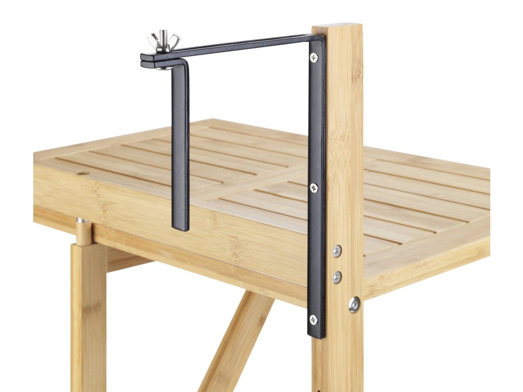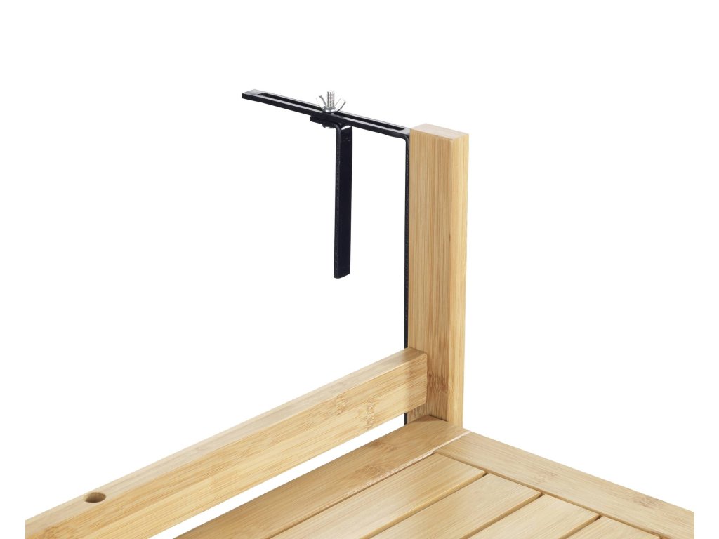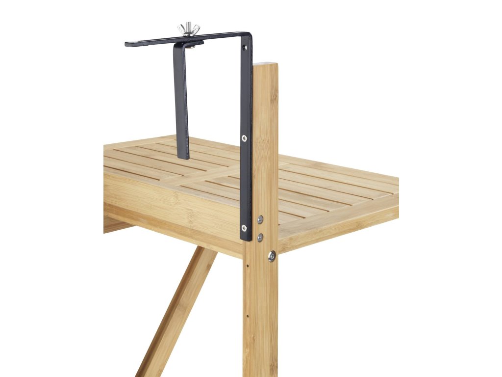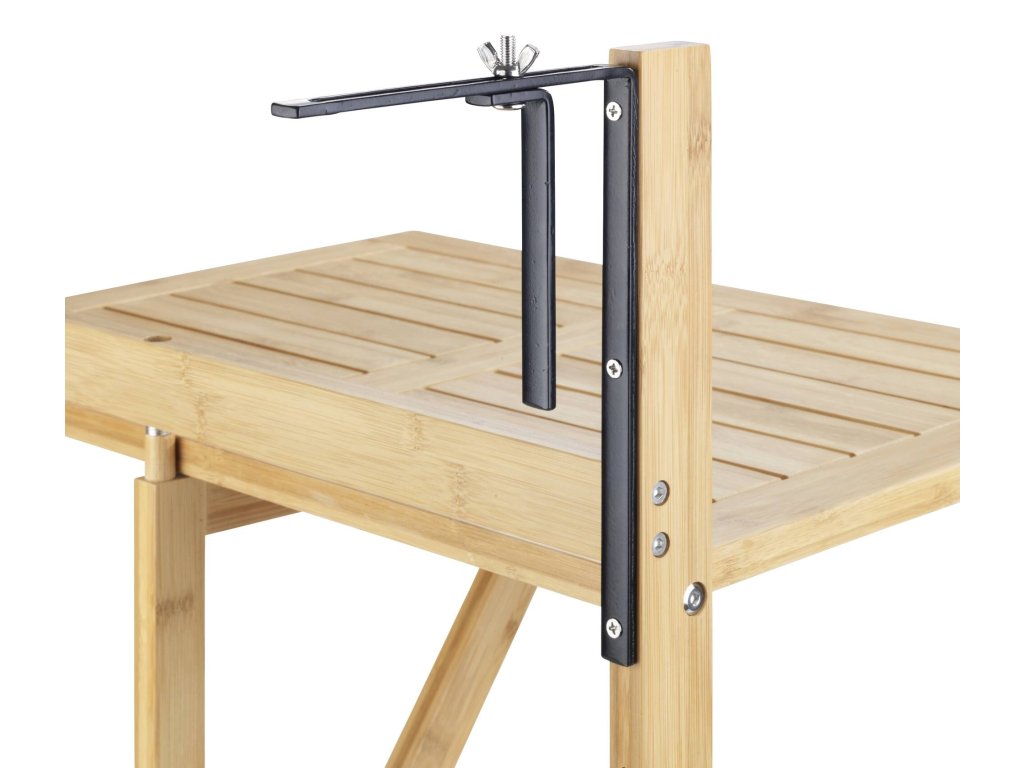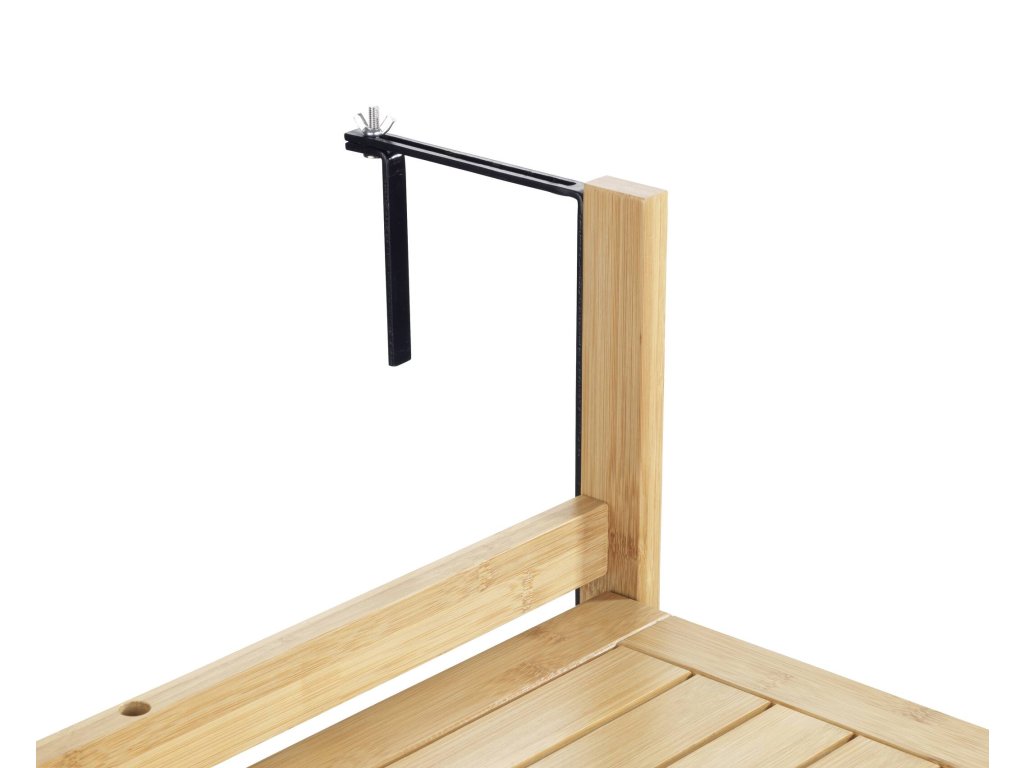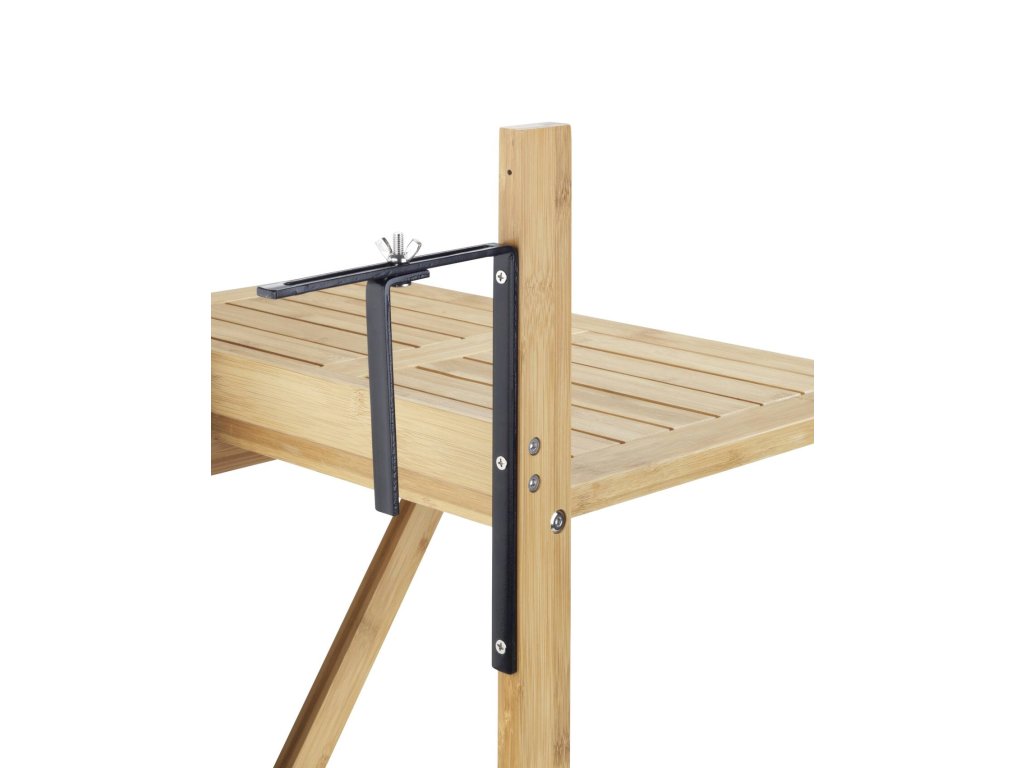 - Snadnost montáže: Díky ocelovým úchytům k připevnění lze stolek snadno namontovat na balkonové zábradlí.