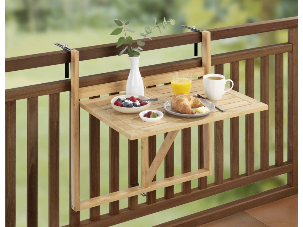 Skládací balkonový stolek na zábradlí WAIKIKI - praktické řešení, které se osvědčí na malých prostorech