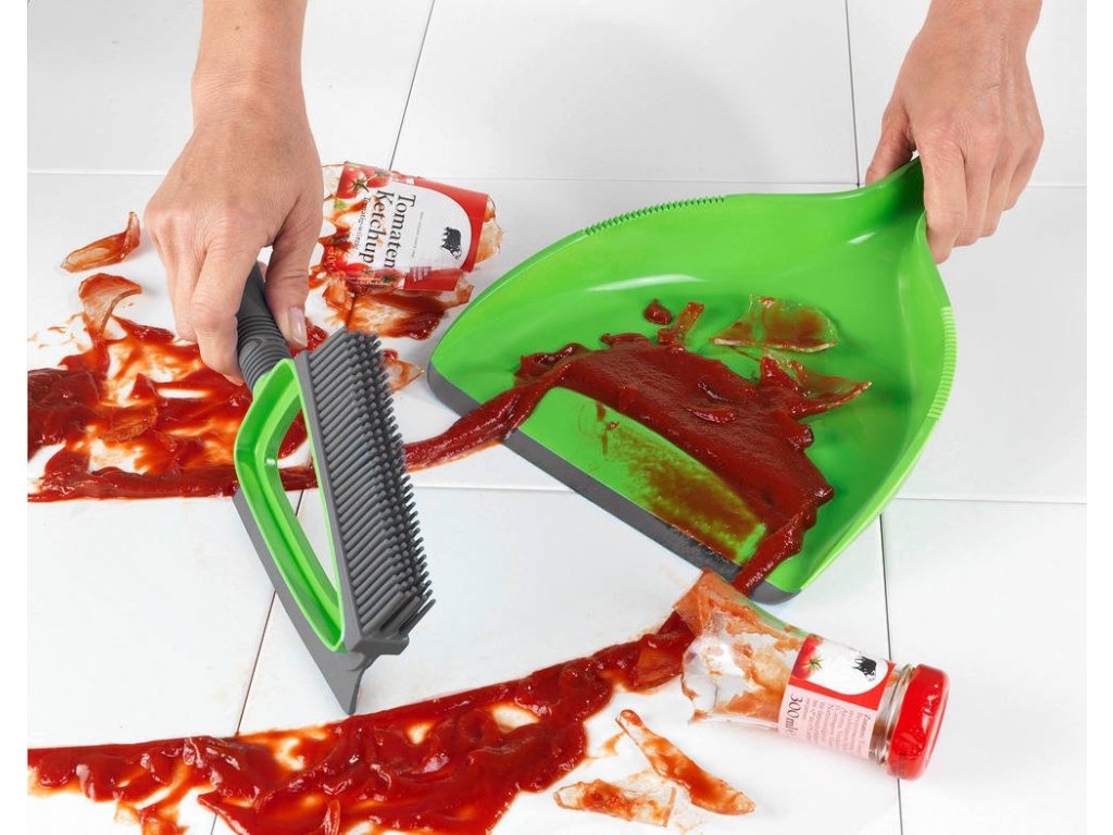 - silikonový kartáč se skvěle hodí na zametání vlasů, a sběrač – například na sbírání potravin.