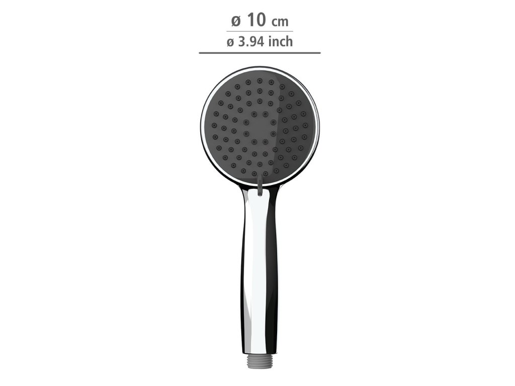 Praktická sprchová hlavice klasického vzhledu byla vyrobena z vysoce kvalitního plastu (ABS) v barvě chromu. Obsahuje odolné otvory, z nichž je snadné odstranit usazující se vodní kámen. Tím se snižuje frekvence mytí zařízení a používání čisticích prostředků, což přispívá k ochraně životního prostředí. Usazeniny lze úspěšně odstranit i prstem. Průměr sprchové hlavice činí 10 cm. Adaptér umožňuje rychlé připojení hlavice k hadici. Pohodlná sprchová hlavice má univerzální připojení s ½”. Připojení je také vhodné pro použití s průtokovými ohřívači vody.