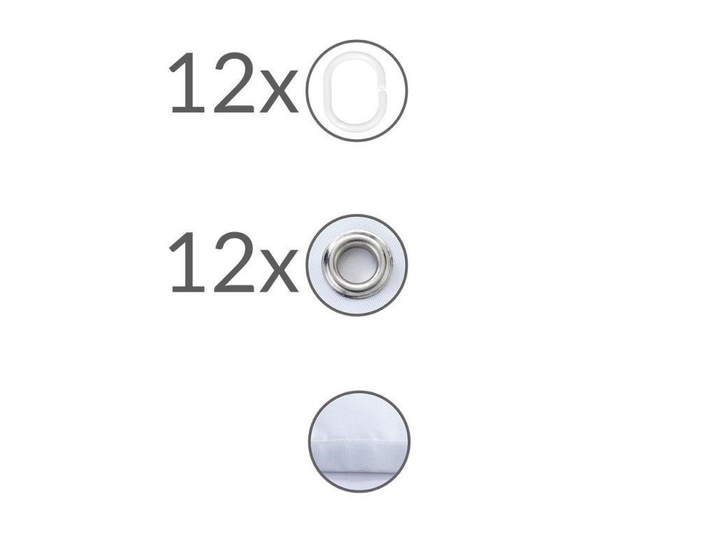 - je vybaven 12 plastovými kroužky pro zavěšení a gumovým páskem na spodní straně pro zatížení,