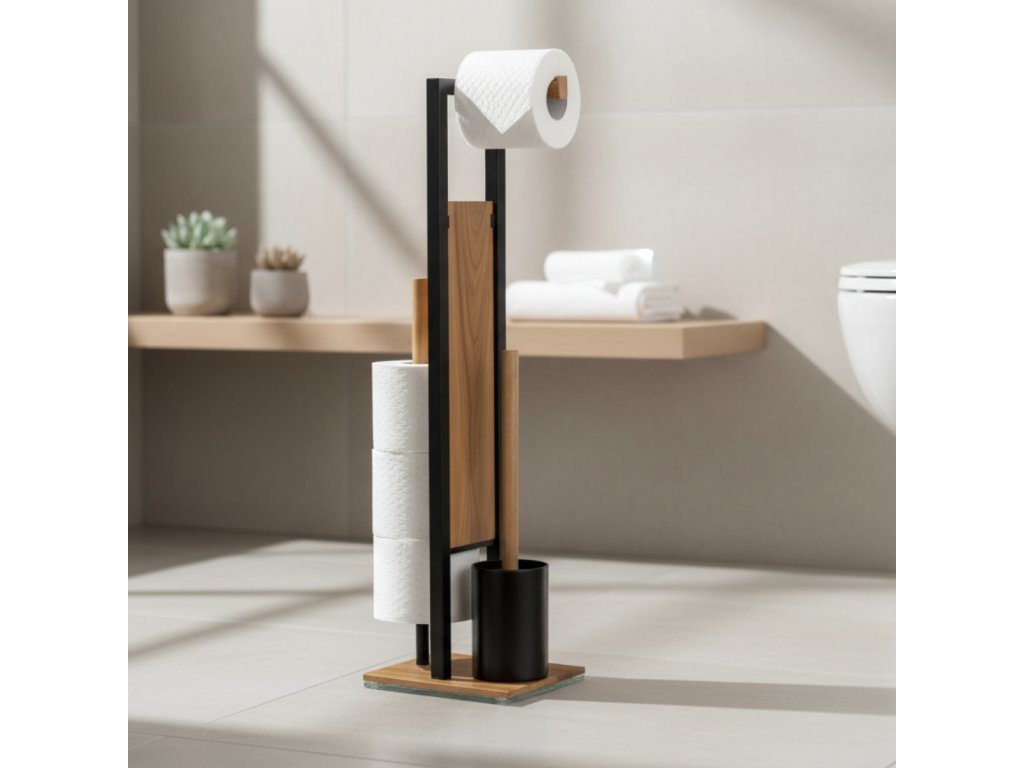 Stojan na toaletní papír a WC štětku s prvky z akáciového dřeva s FSC - elegantní akcent pro vaši koupelnu z kolekce RIVALTA
