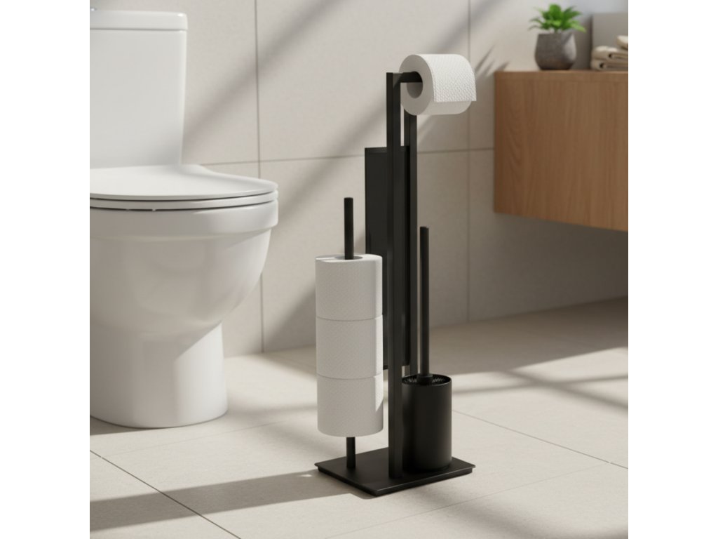 Stojan na toaletní papír s držákem a kartáček RIVALTA, černý