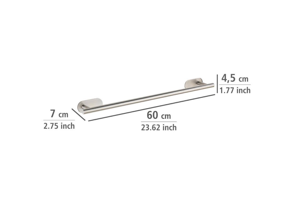 - Optimální rozměry: S rozměry 7 x 60 x 4,5 cm je držák dostatečně velký, aby pojmul ručníky různých velikostí, zároveň nezabírá příliš mnoho místa na stěně.